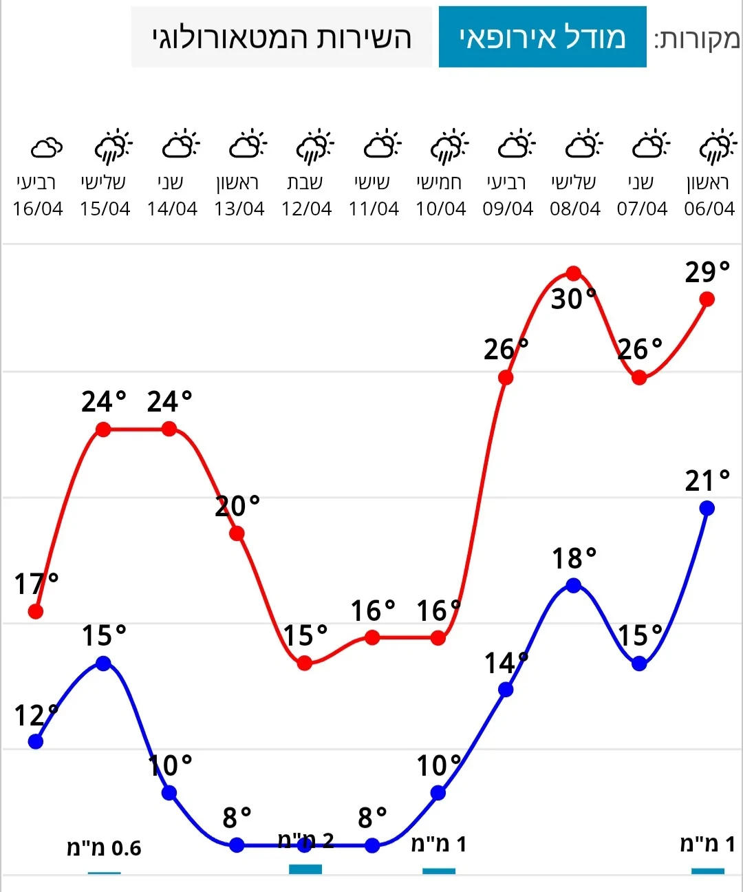 - עוד התקררות שבוע הבא? תחזית המודל האירופאי לירושלים. רביעי עוד שבוע וחצי, ירידה בטמפ'. מתנאל