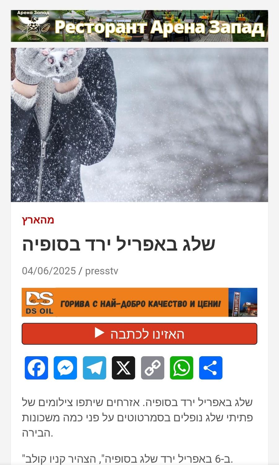 - אכן. בבולגריה מתפעלים מה"שלג האביבי": מתנאל