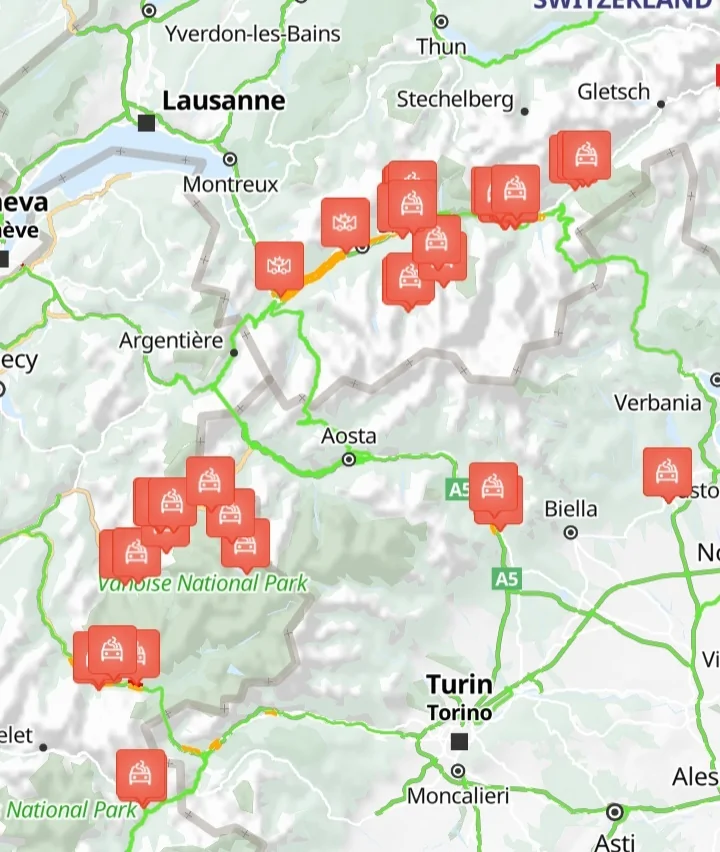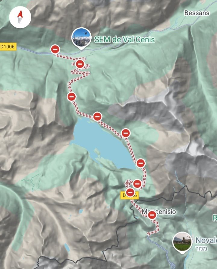 - כביש נוסף באזור המחבר את צרפת ואיטליה במעבר הרים בגובה 1600 מטר, חסום לגמרי חנוך א