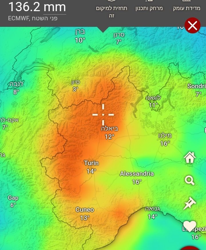 - בצרפת מדווחים על 40 ס"מ שהצטברו בעיירה שאמוני (1000 מטרים) ביממה האחרונה אבי (חריש)