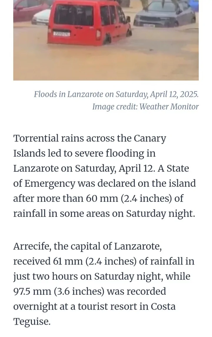 היא הורידה 100 ממ באי הצפוני של האיים הקנריים, אי המקבל 150 ממ בשנה.