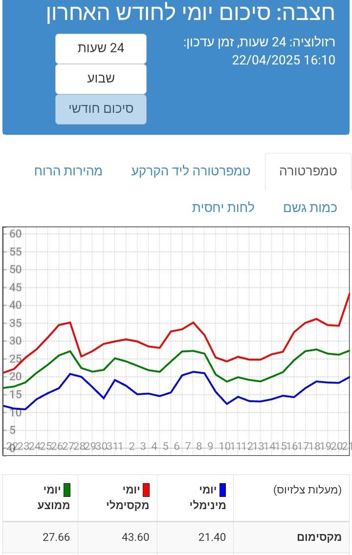 דיווחי מזג אוויר - יום שלישי 22/04/2025