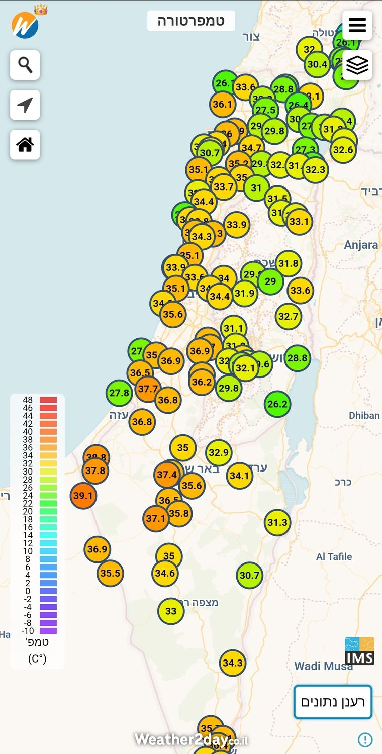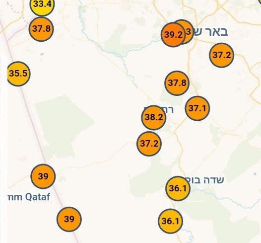שם נמדדת הטמפ' הגבוהה ביותר בתחנות האתר - 39.2°.