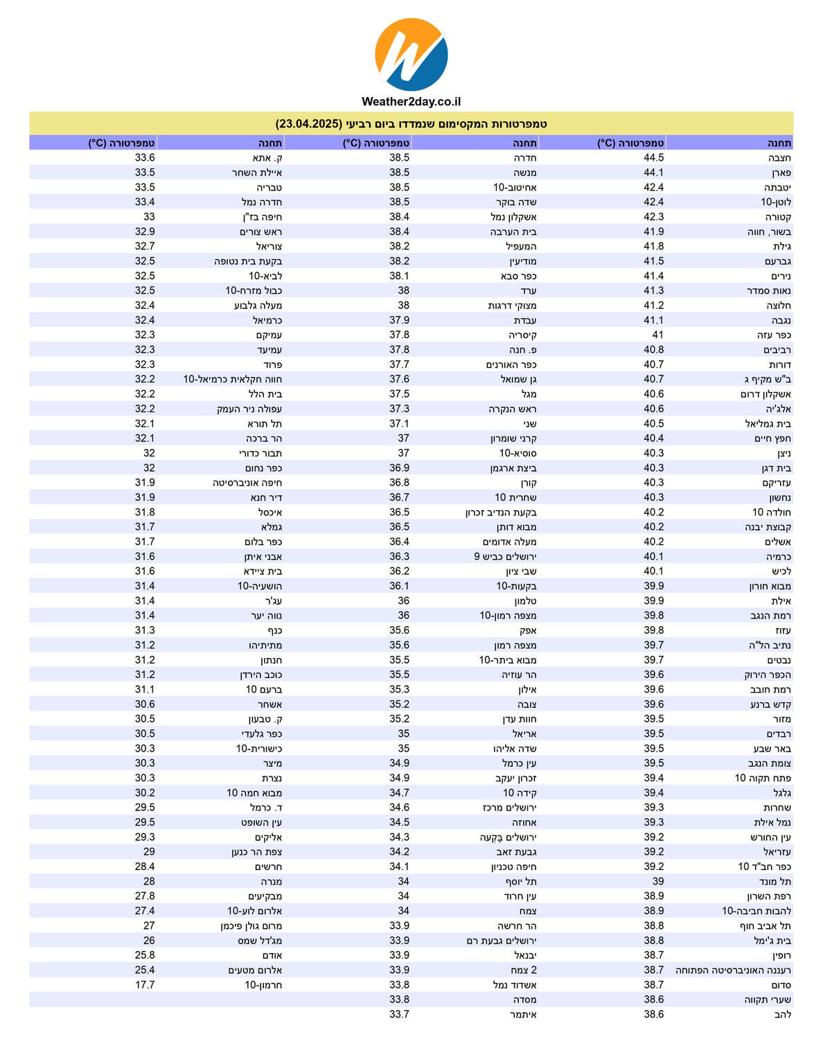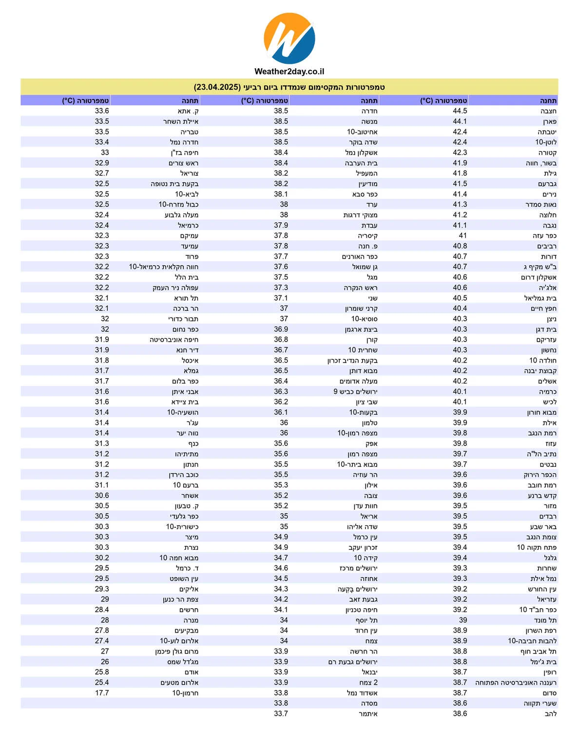 - סיכום יומיים של שרב עם שני שיאים חדשים Weather2day