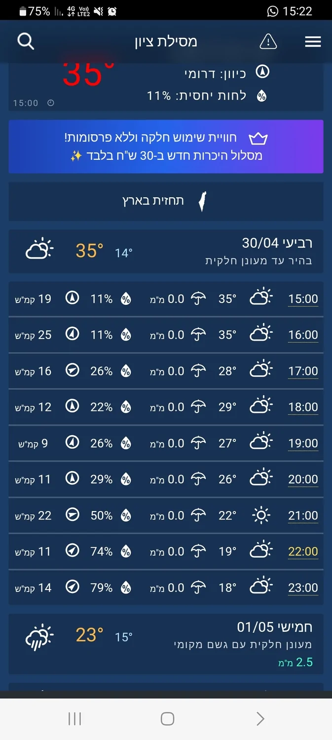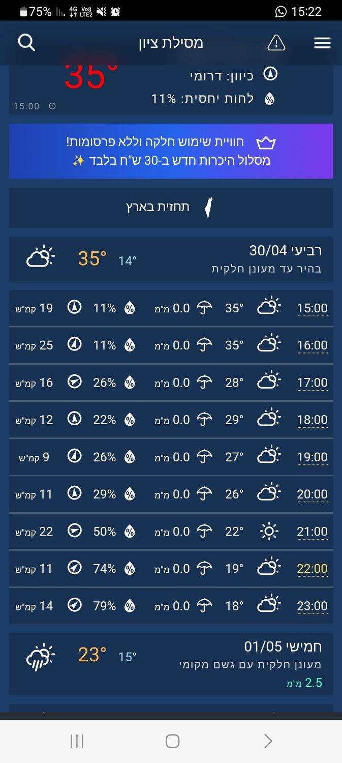 - עדכון לגבי הרוחות בערב יום העצמאות (רביעי) ויום חמישי Weather2day