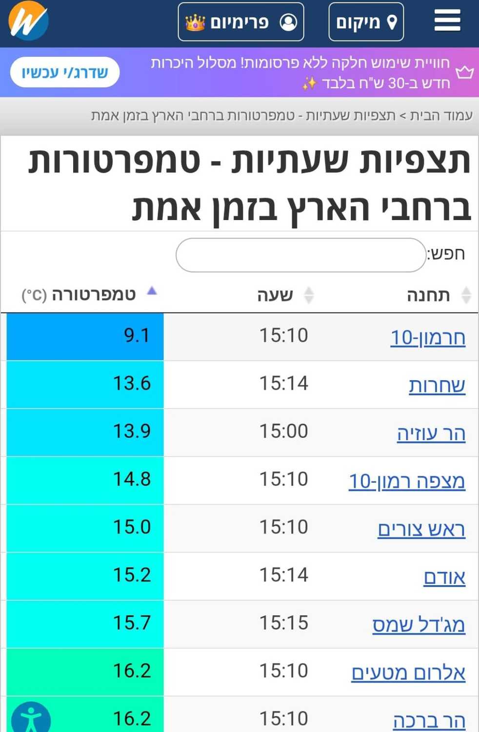 - תצפיות 15:10: 30 מעלות בסדום, 19 באילת. מתנאל