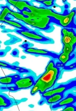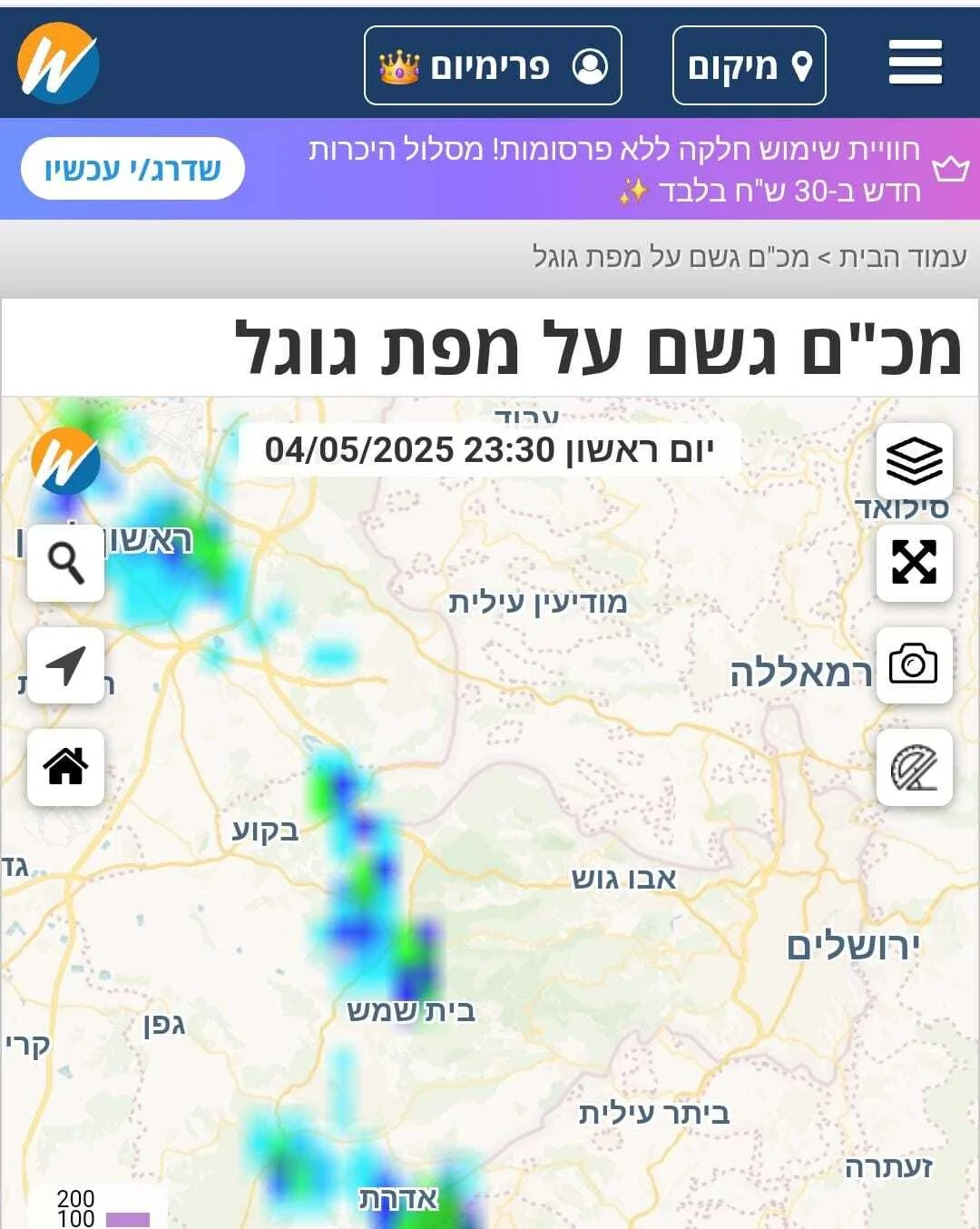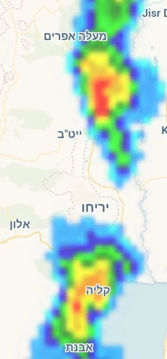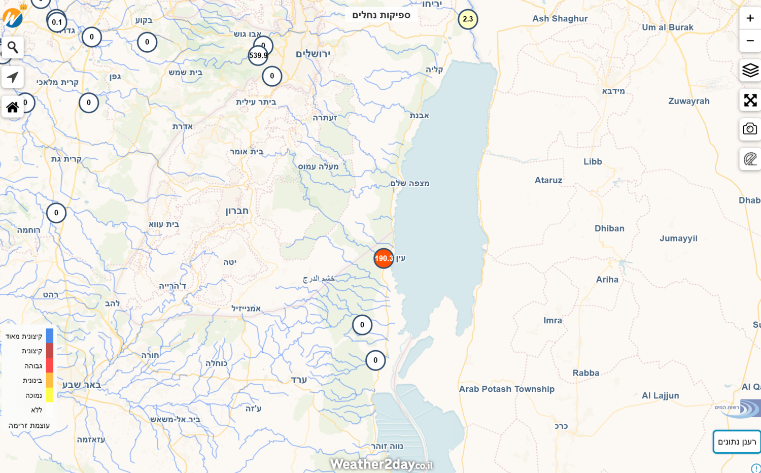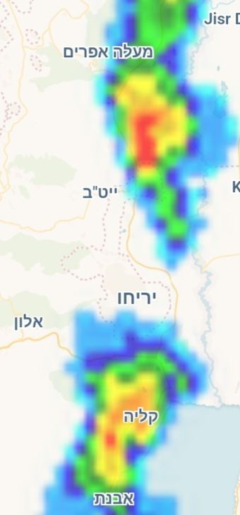 - מפת ספיקות הנחלים - שימו לב לעוצמה בערוגות Weather2day