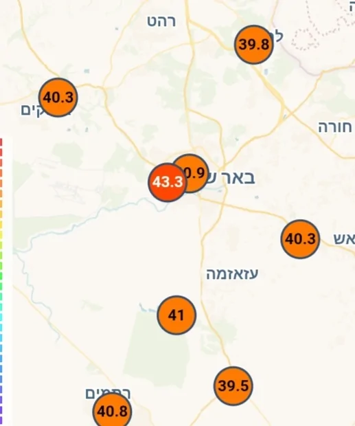 42 מעלות כעת במקיף ג' בבאר שבע.