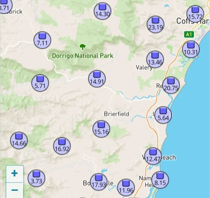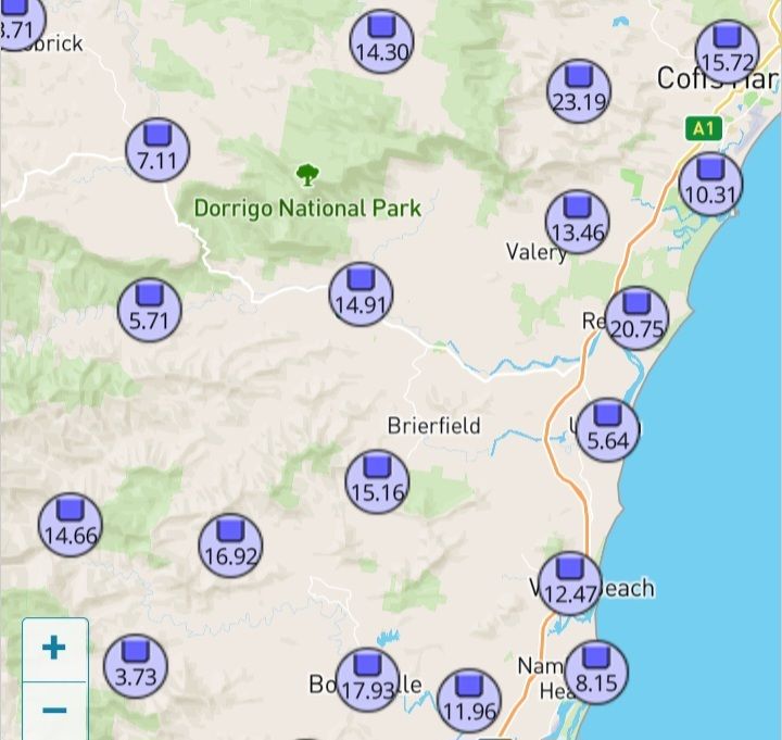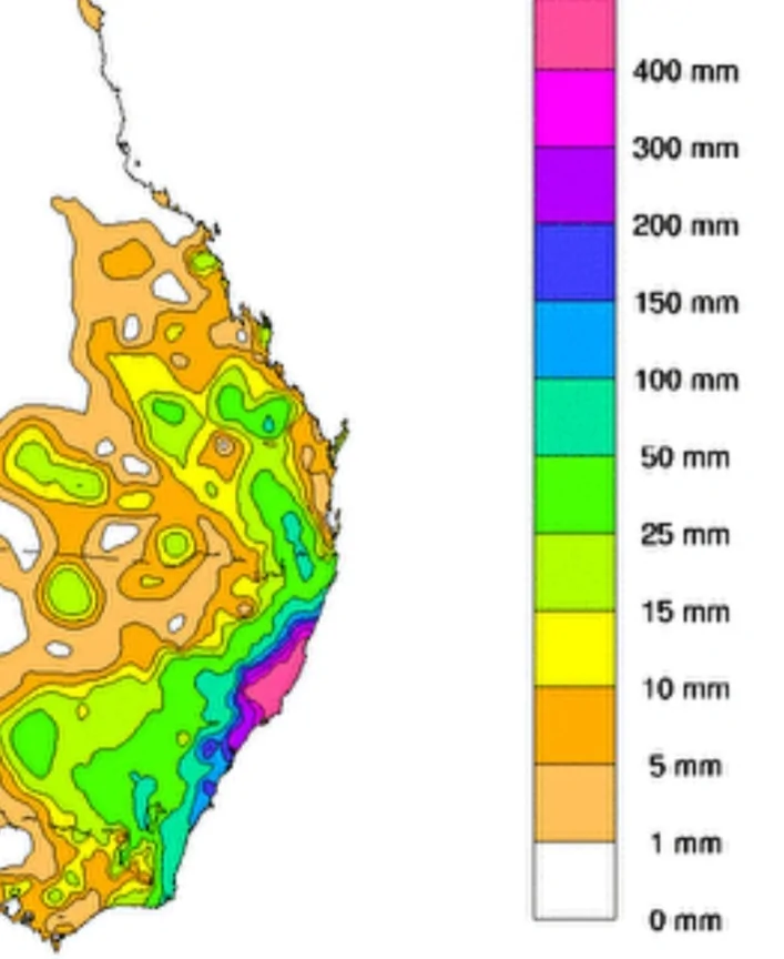 בפועל הכמויות באזור Taree מגיעות ל-300-400 ממ בשני/שלישי