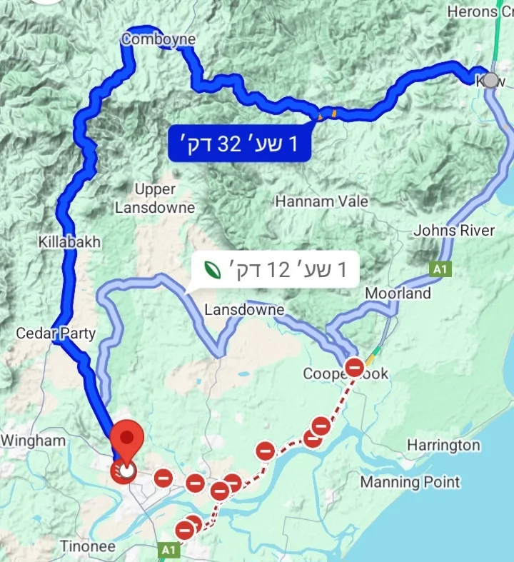 - מאריך את זמן הנסיעה בין Kew ו-Taree פי 2 חנוך א