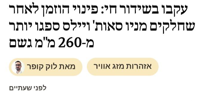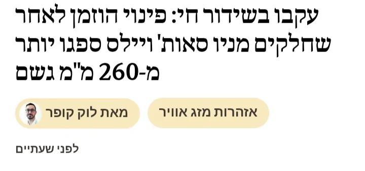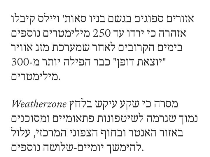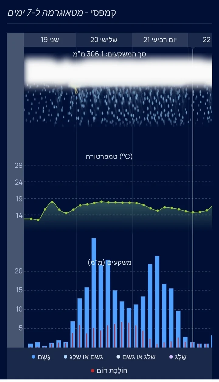 - התחזית לאזור הייתה 300 ממ בשני/ שלישי חנוך א