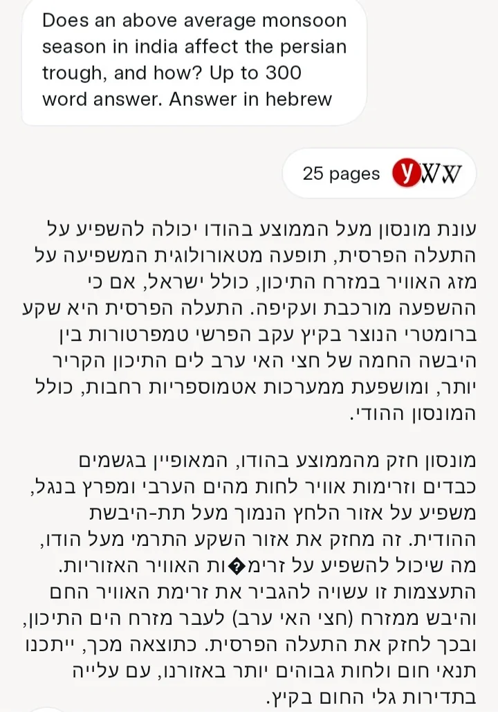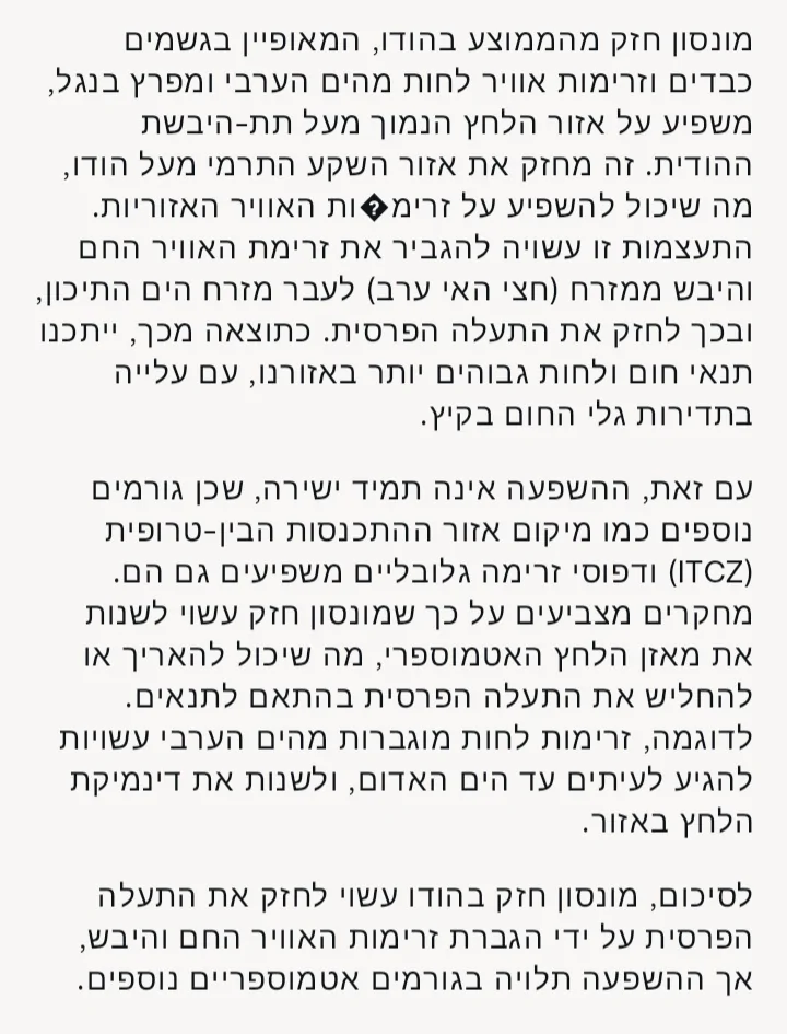 - צפי למונסון מעל לממוצע חנוך א