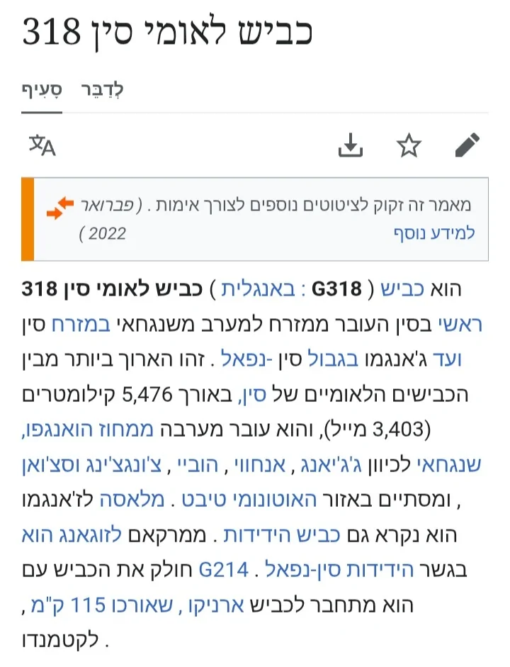 אגב, G318 אורכו כמעט 5500 ק"מ, קצת יותר מכביש 90