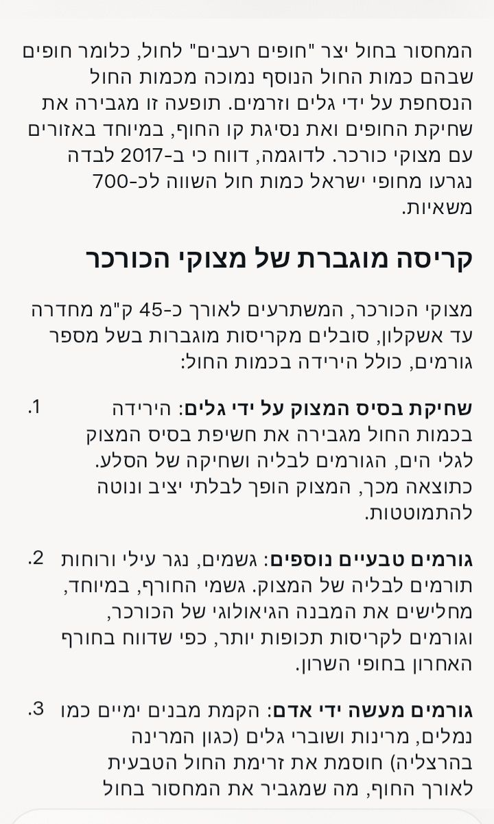 - AI בנושא כמות החול וקריסת צוקי הכורכר חנוך א