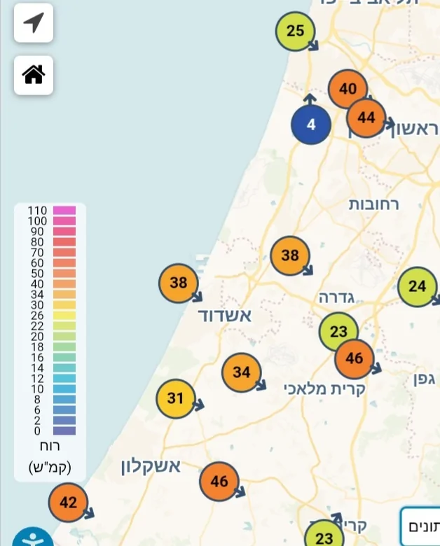 באמצע: רפת השרון, אשקלון ואריאל עם 23.9°.