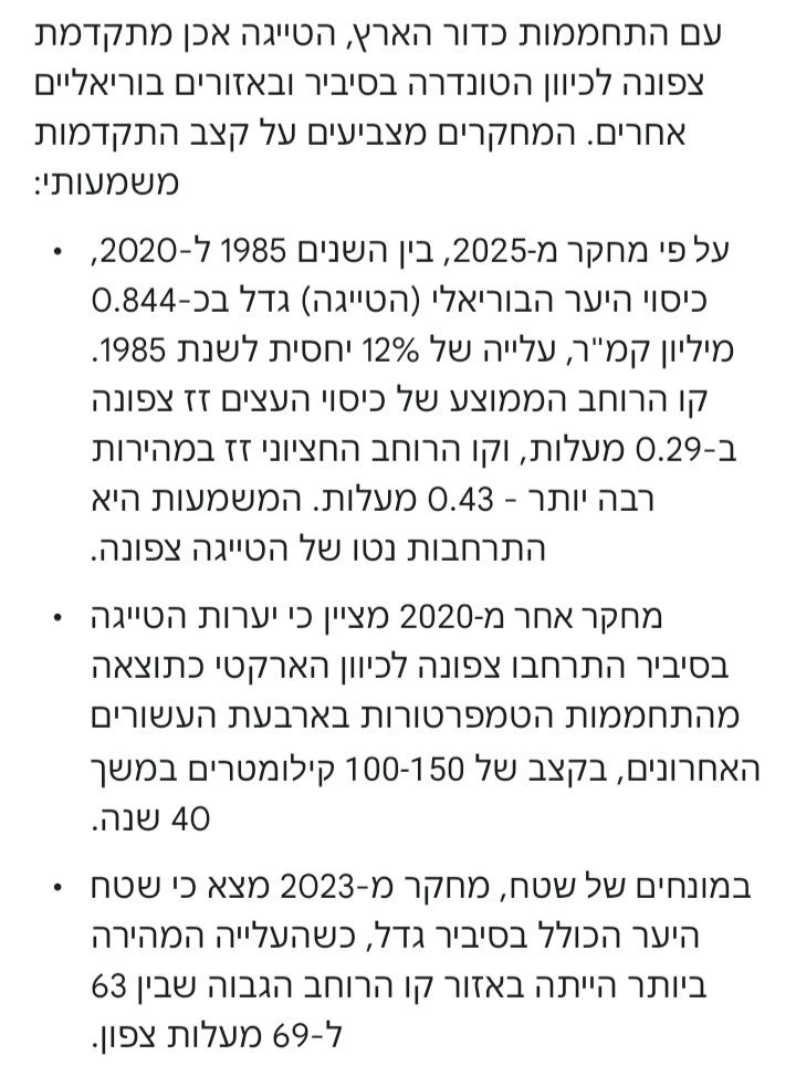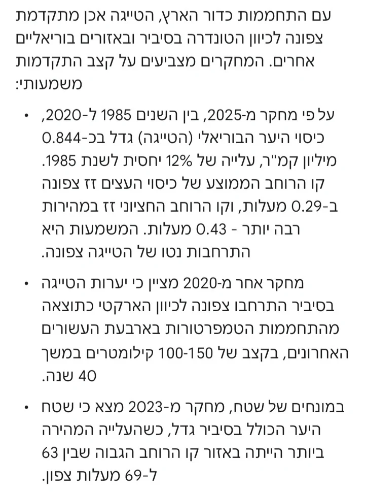 עם התחממות כדור הארץ קו העצים בכל העולם עולה. מעניין מתי כל הטונדרה תהפוך לטייגה יעני איזור מיוער