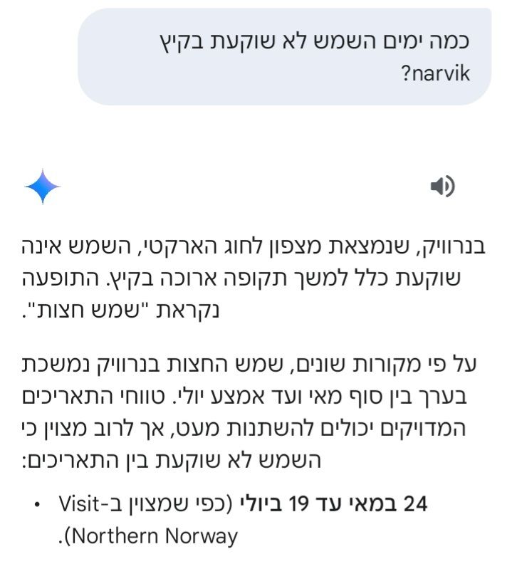 אבל בעיר Narvik הצפונית יותר השמש לא שוקעת במשך 55 ימים