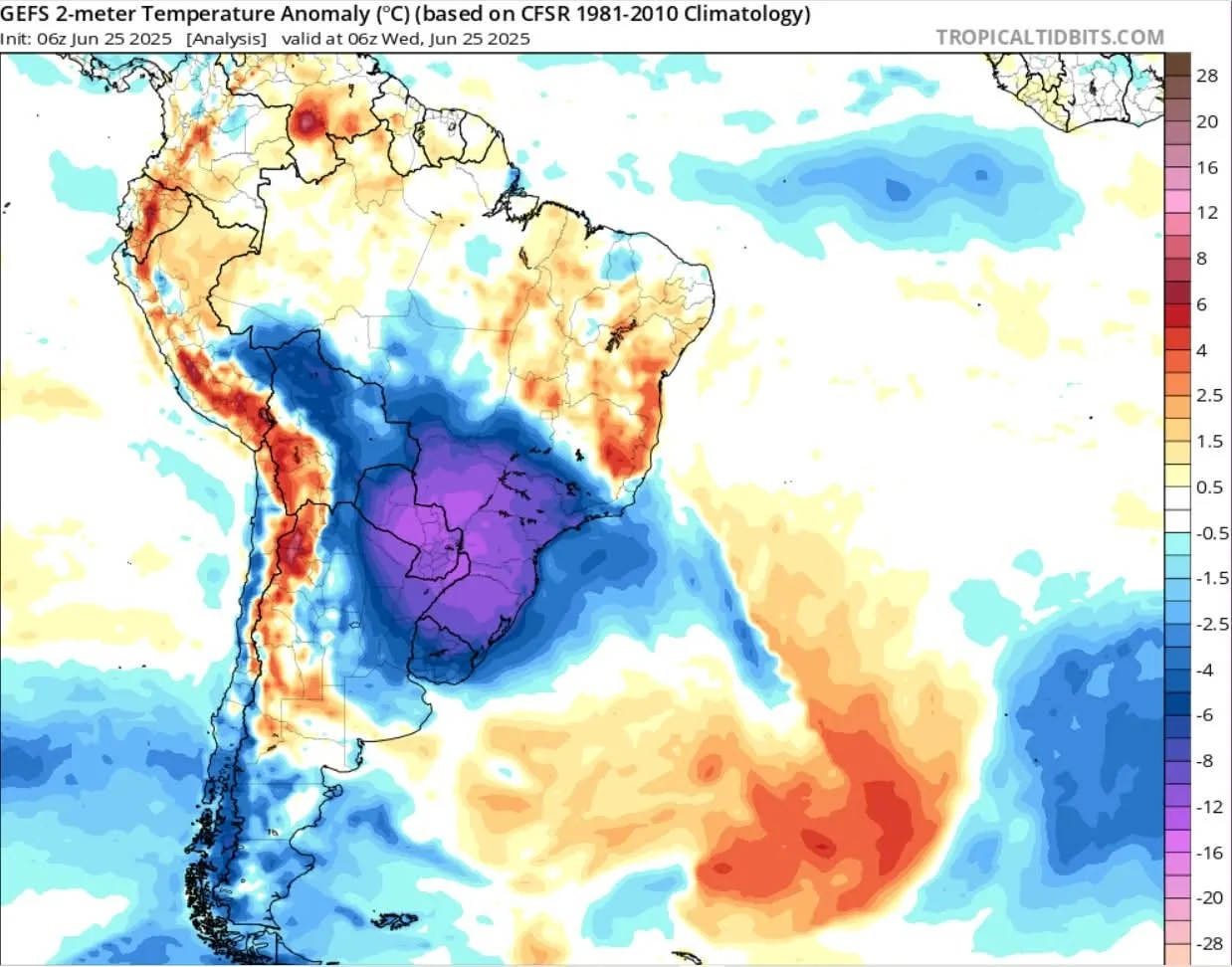 ביום רביעי האחרון נמדדה טמפרטורה של −8.0°C בעיירה אורופמה (Urupema) שבמדינת סנטה קטרינה – אחת הנמוכות שנרשמו בברזיל בשנים האחרונות. מדובר בשיא מקומי במסגרת גל קור חריג שפקד את דרום המדינה במהלך השבוע שעבר.