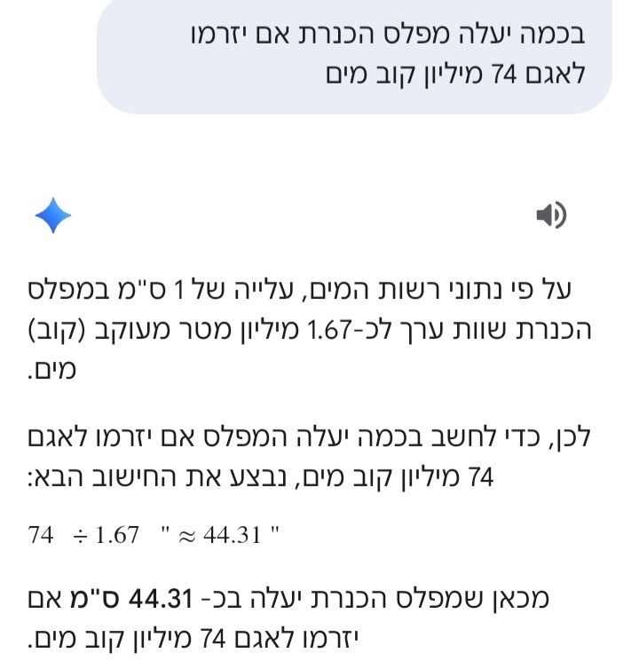 - כמות כזו הייתה מעלה את מפלס הכנרת ב-44 סמ חנוך א