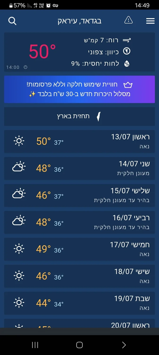 מדובר במדים מקוונים וייתכן שעקב ההתחממות היומית בערב הם יראו מעלה יותר.