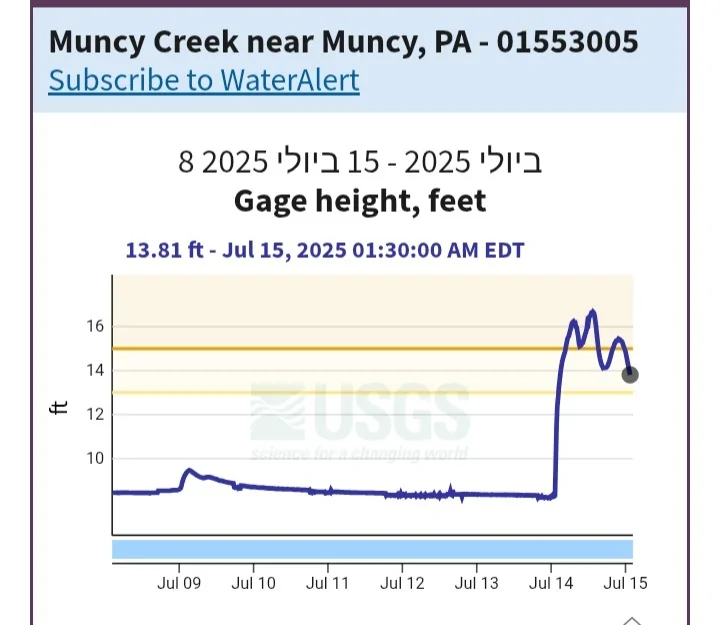 עיירה בפנסיבניה פונתה כשהנחל החוצה את העיירה עלה בשלושה מטר תוך כמה שעות