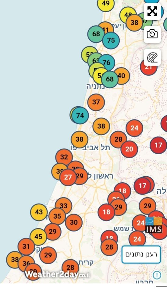 - 21:00 בערב? 40.5° בסדום, 31.7° בתל אביב, 29.1° בירושלים. מתנאל