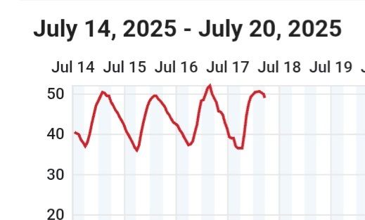 הטמפ' מטפסת והלחות יורדת, מה שמוביל לנקודת טל חד ספרתית לראשונה הקיץ כאן