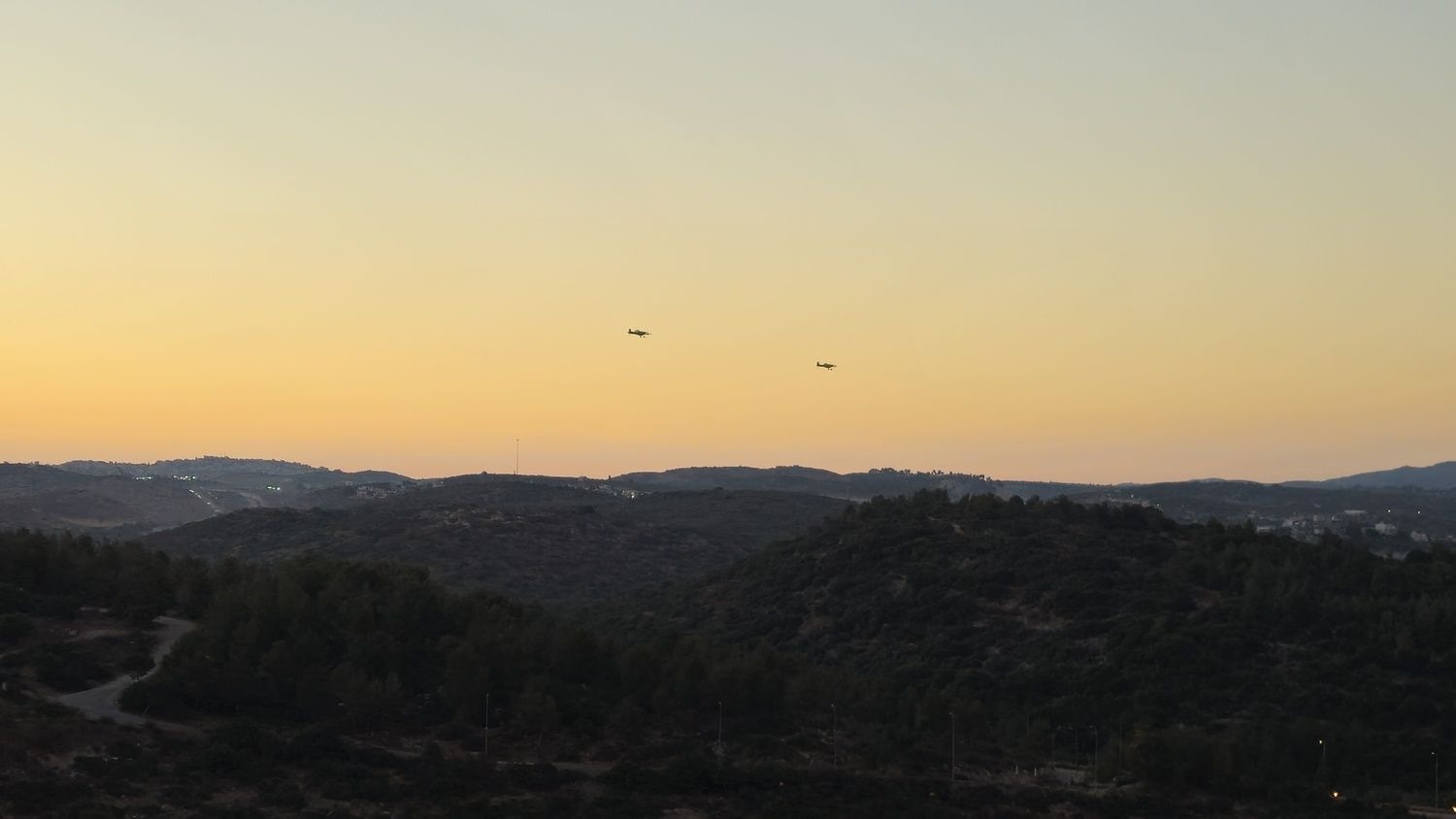 מבט לכיוון מזרח מחלון החדר בשעה האחרונה דקות לפני הזריחה, ניתן לראות 2 מטוסים קלים מעל ההרים :)