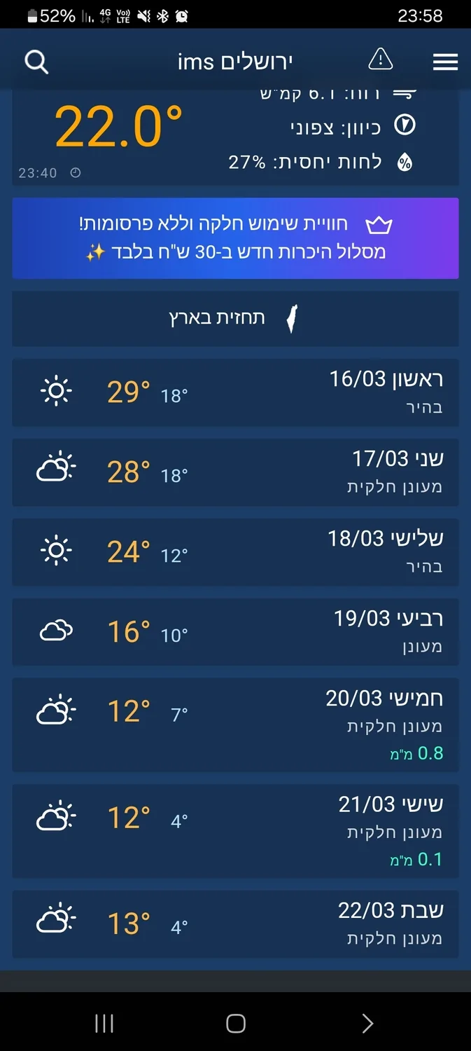 - דיווחי מזג אוויר - יום ראשון 20/7/2025 דובי