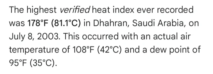 - אני זוכר משהו מאזור המפרץ של סביב 40 מעלות עם סביב 70% לחות דרור