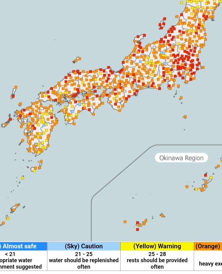 לעומת זאת באי המרכזי של יפן הונשו צפוי גל חום חסר תקדים בשבוע הקרוב עם לא פחות מ-3 ימים רצופים עם 40 מעלות בקיוטו שעדיין לא חוותה טמפ' כזאת מתחילת המדידות (שיא מוחלט עד כה 39.8° שנמדדו ביולי 2018), כך שצפויים להישבר שם שיאי טמפ'.