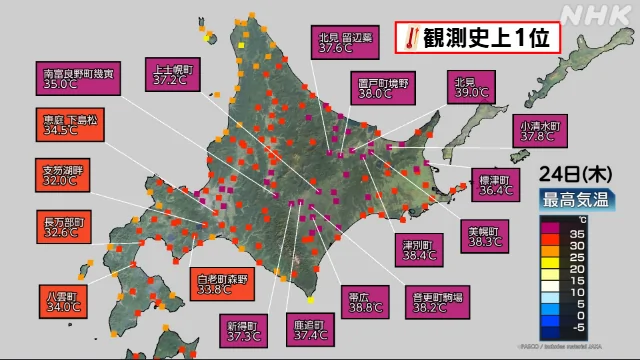 - הוקאידו שברה שיא טמפרטורה לחודש יולי עם 39 מעלות שנמדדו היום אבי (חריש)