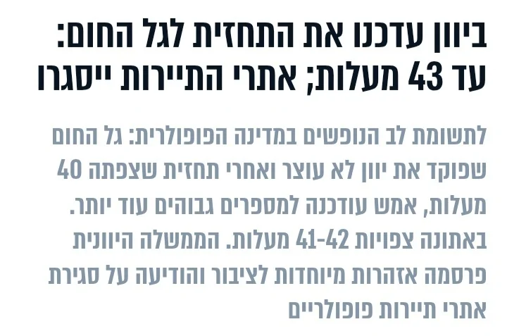 אתמול נמדדו באתונה 38 מעלות עם 40% לחות, מה שיצר נקודת טל גבוהה מעל 20 מעלות.