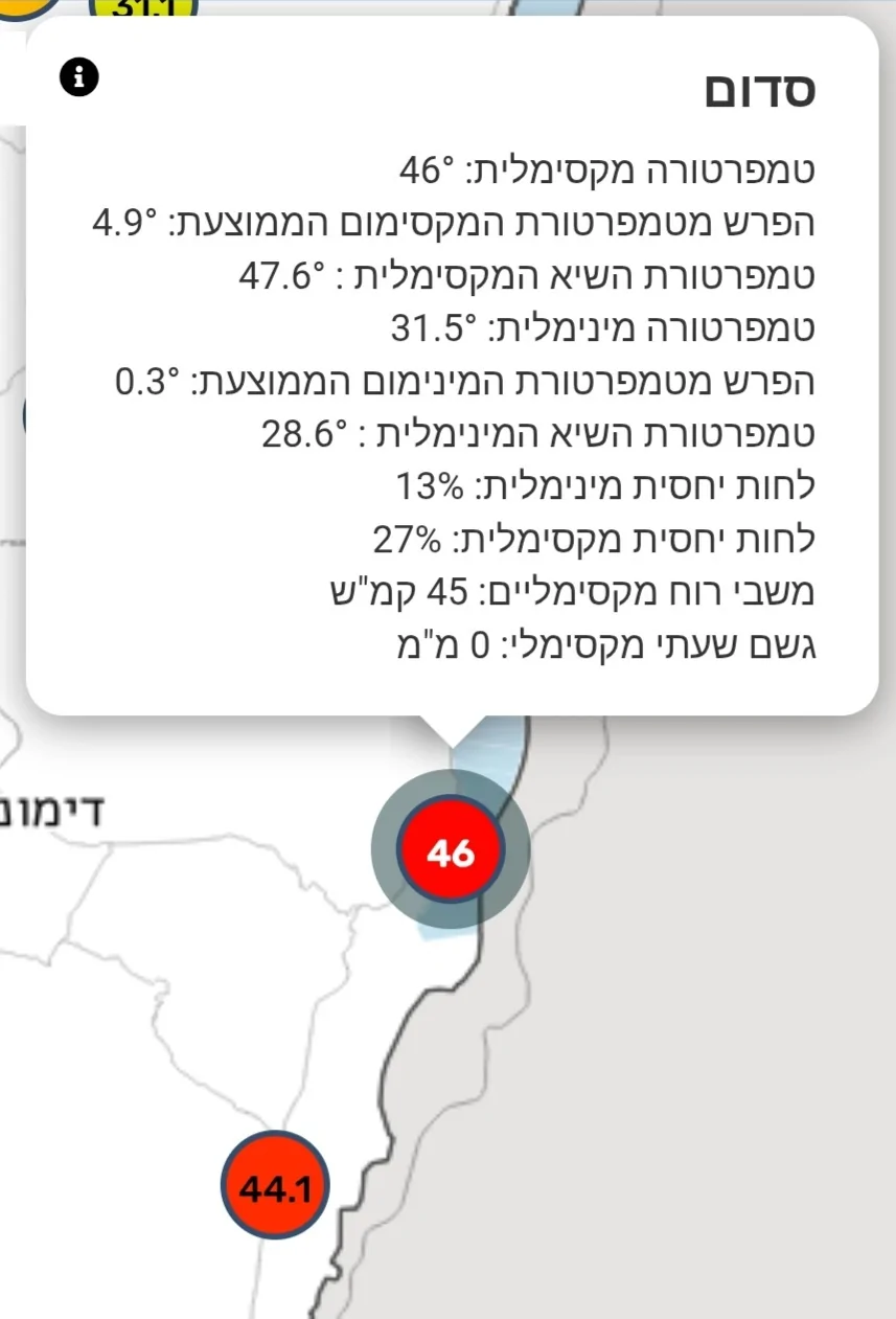 - 46° נמדדו היום בסדום אבי (חריש)