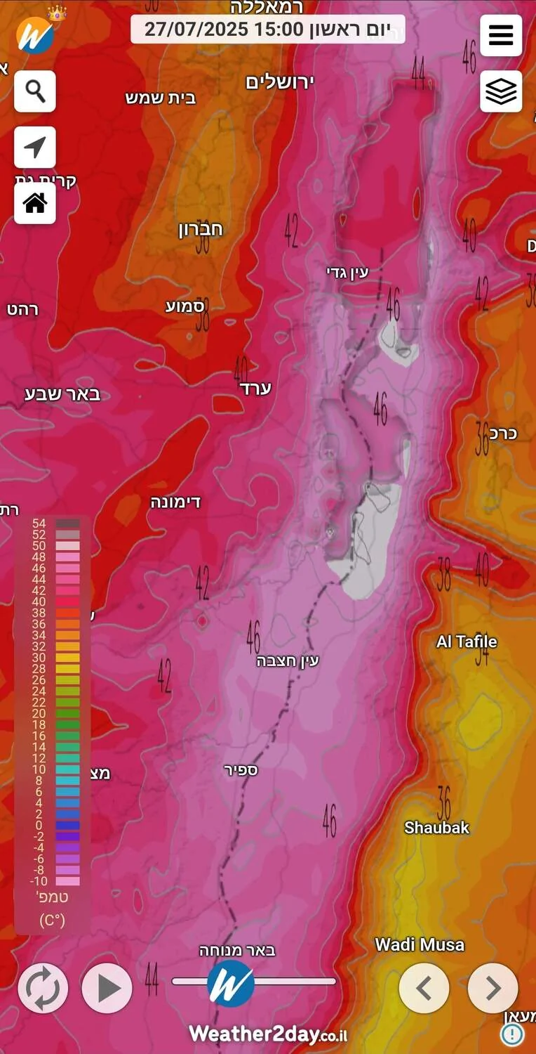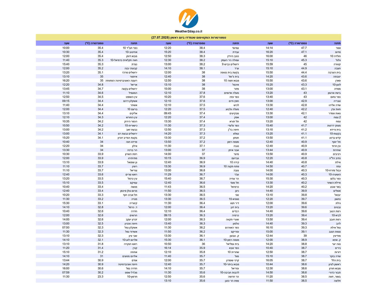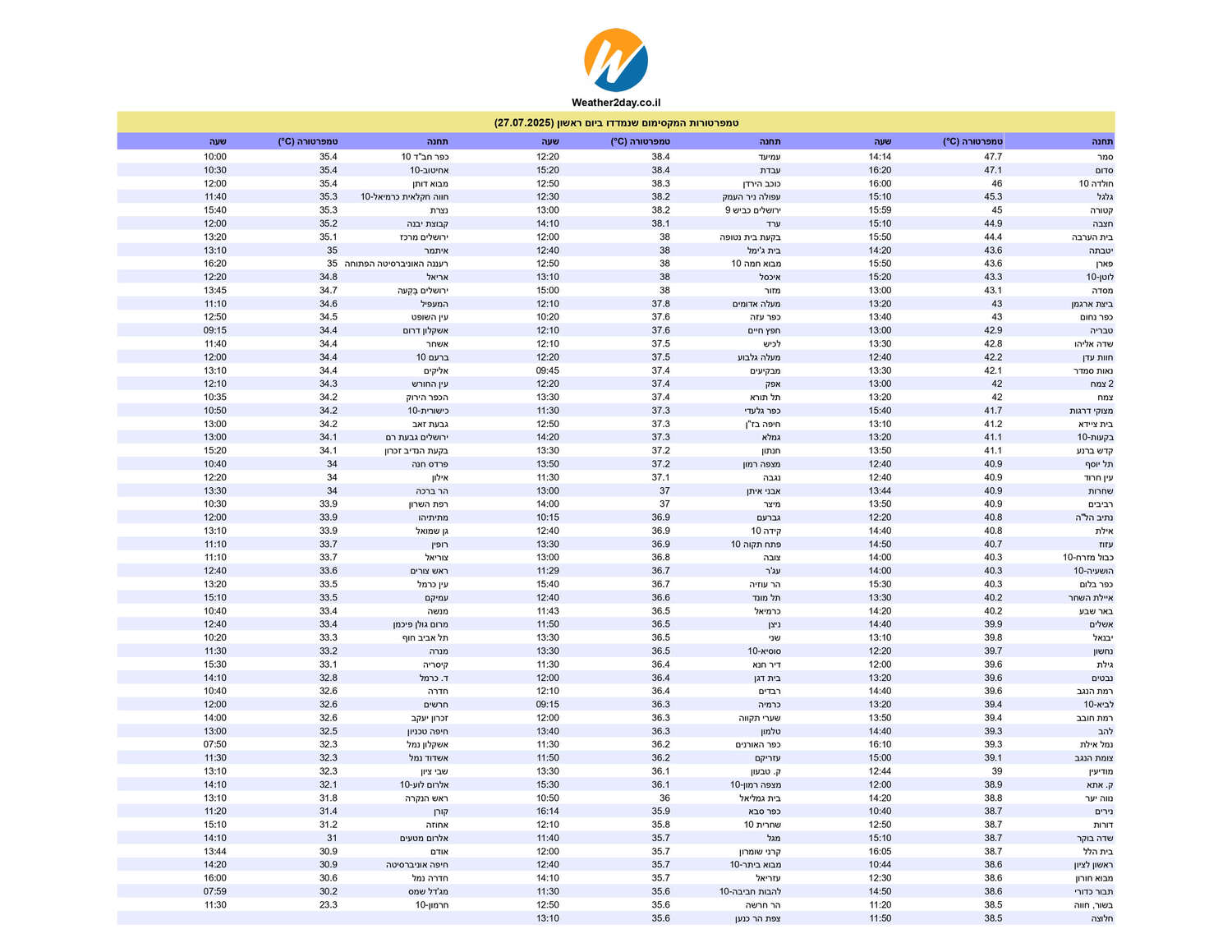 - טמפרטורות המקסימום שנמדדו ביום ראשון (27.07.2025) Weather2day