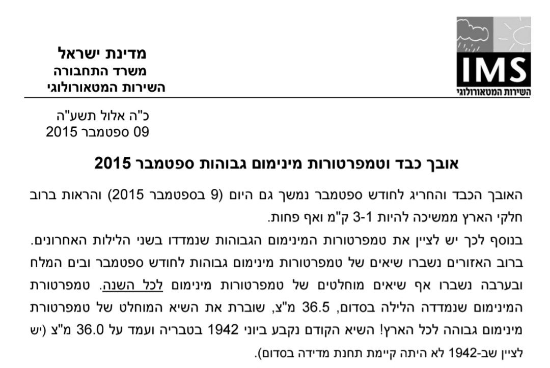 ונחשב לטמפ' המינ' הגבוהה ביותר שנמדדה בארץ.