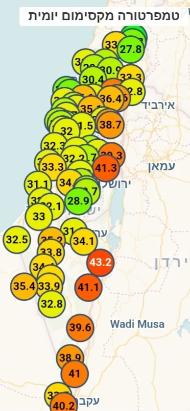 - כעת: 18.2° במג'דל שמס, 33.0° בסדום. מתנאל