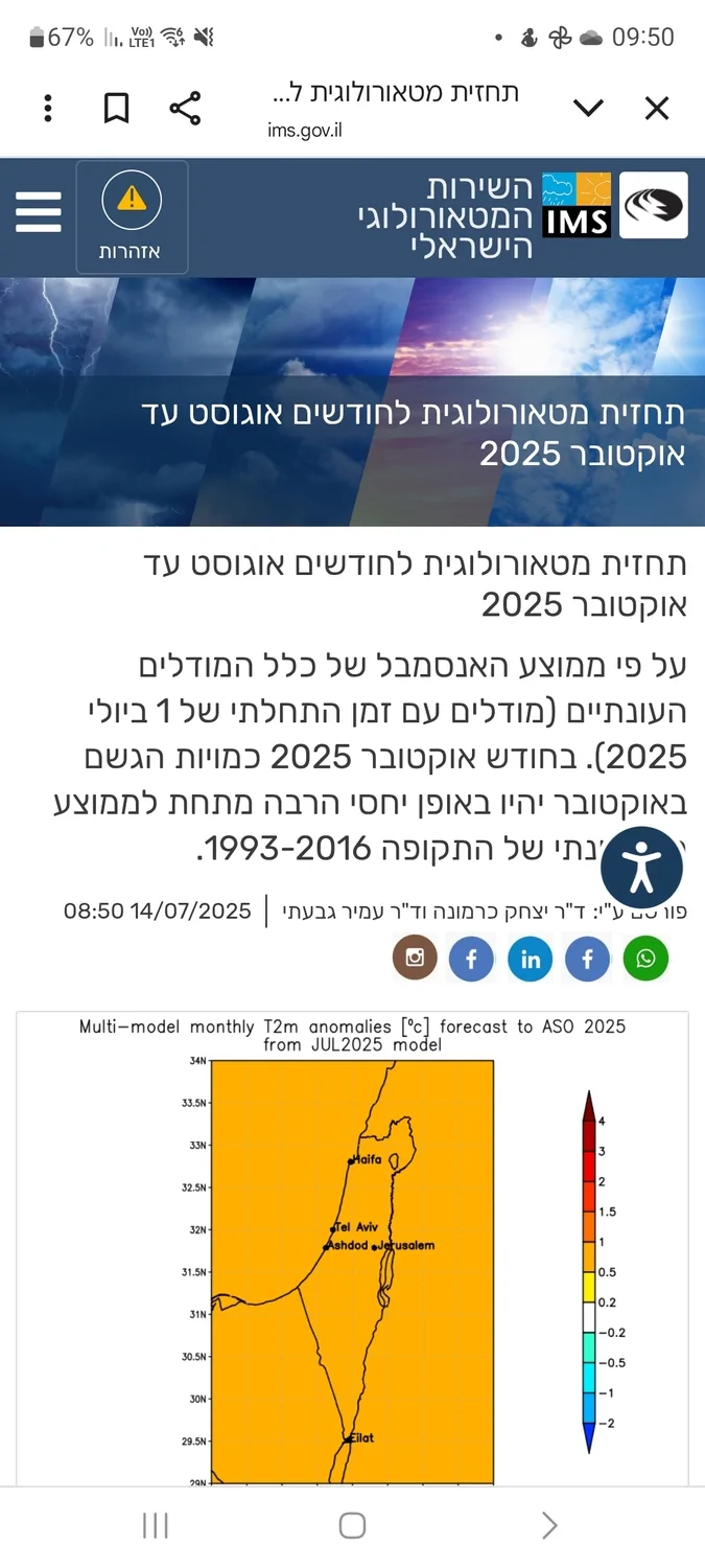 - דיווחי מזג אוויר - יום שלישי 29/07/25 אופיר פרנקו