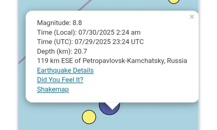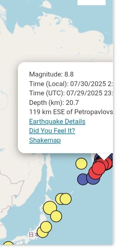 מגה רעידה 8.8 פלוס צונאמי בקמצ'טקה