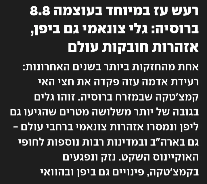 - מגה רעידה 8.8 פלוס צונאמי בקמצ'טקה חנוך א