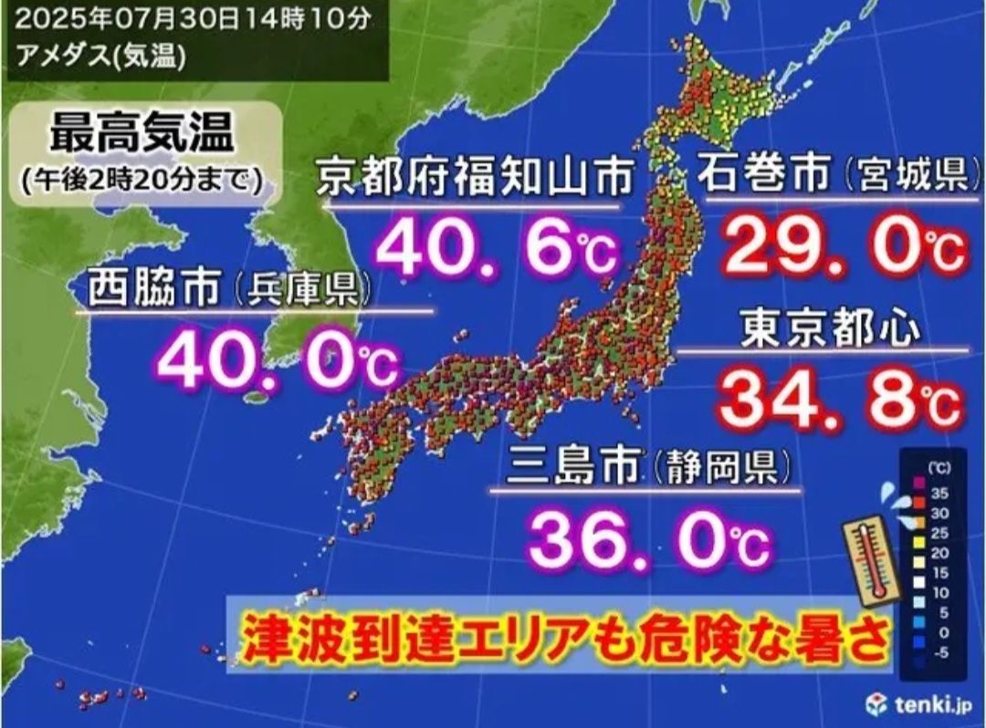 לצד הצונאמי, יפן הגיעה ל-40 מעלות בפעם הראשונה השנה