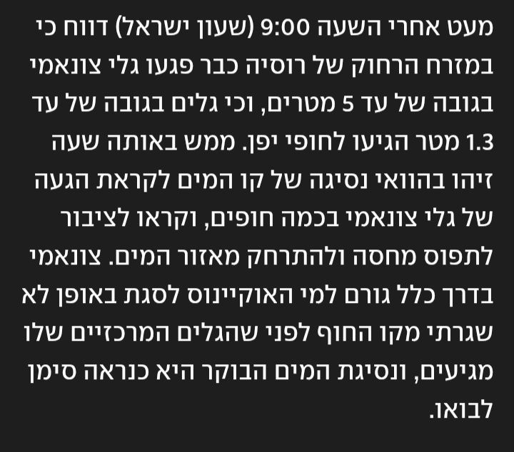 - גובה הצונאמי הגיע עד 60 ס"מ עפ"י העדכון האחרון בדקות אלו אבי (חריש)