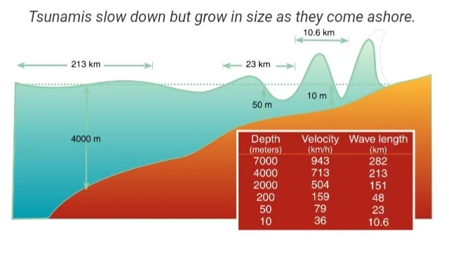 הסיבה: בים הפתוח גלי הצונאמי נמוכים ורק כאשר הם מתקרבים לחוף, בגלל שהים נעשה יותר ויותר רדוד הגלים הופכים למפלצות