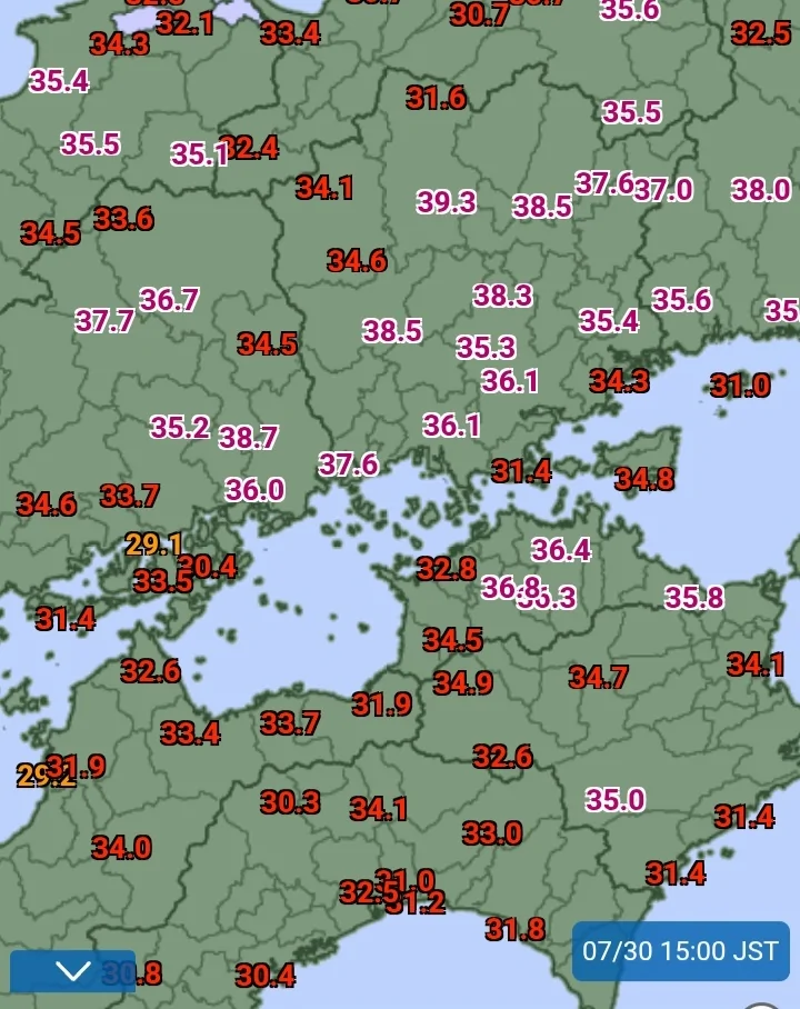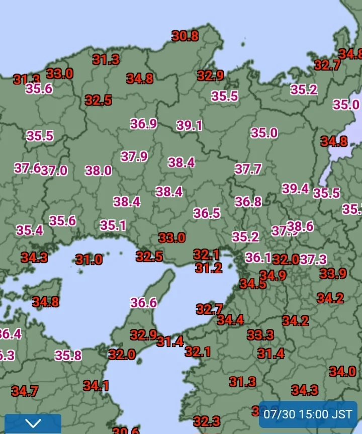 השיא נמדד היום בעיר טקהאשי שבמערב המדינה ושבר את השיא המוחלט הקודם של העיר מתחילת המדידות שעמד על 39.3° באוגוסט 2020.