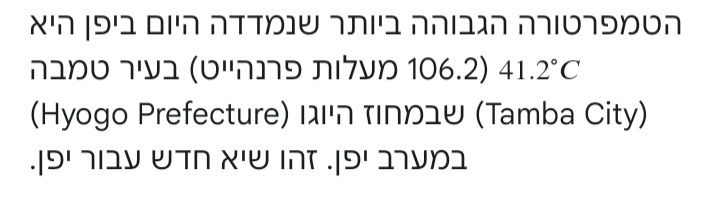- לצד החזרה לשגרה ביפן, עבר עליה יום לוהט נוסף אבי (חריש)
