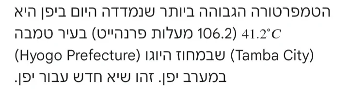 - לצד הצונאמי, יפן הגיעה ל-40 מעלות בפעם הראשונה השנה אבי (חריש)