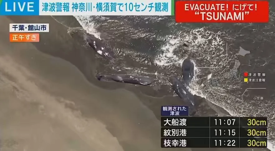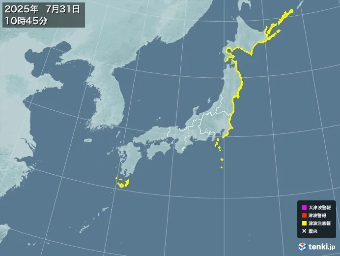 הסוכנות המטאורולוגית של יפן כתבה לפני מספר שעות שהסטנדרט להוצאת "אזהרת צונאמי צהובה" הוא כאשר גובה הצפוי של הצונאמי הוא בין 20 ס"מ למטר אחד. אפילו צונאמי בגובה של 20 עד 30 ס"מ בלבד יכול לגרום לאנשים להילכד בזרם המהיר. שהייה באוקיינוס או בקרבת החוף מסוכנת. כל מי שנמצא באוקיינוס צריך לצאת מהמים מיד ולהתרחק מהחוף מהר ככל האפשר. מכיוון שהזרמים יישארו חזקים, אנא אל תיכנסו לאוקיינוס או תתקרבו לחוף עד להסרת "אזהרת הצונאמי".