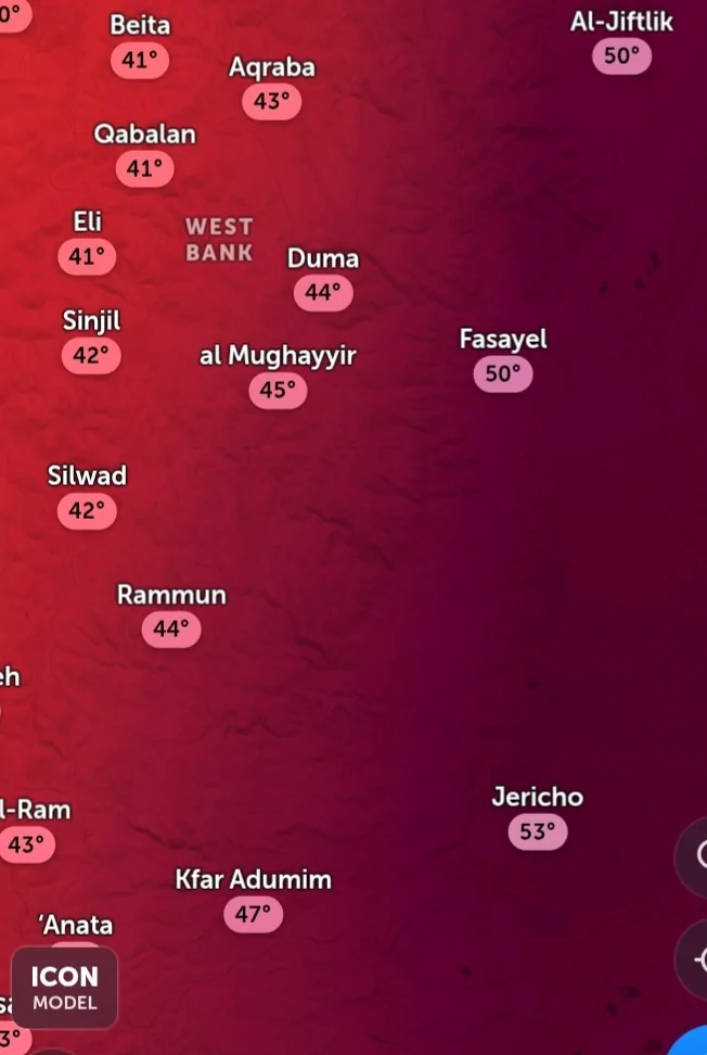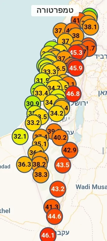 עומס החום המכסימלי היום היה 53 מעלות באזור יריחו