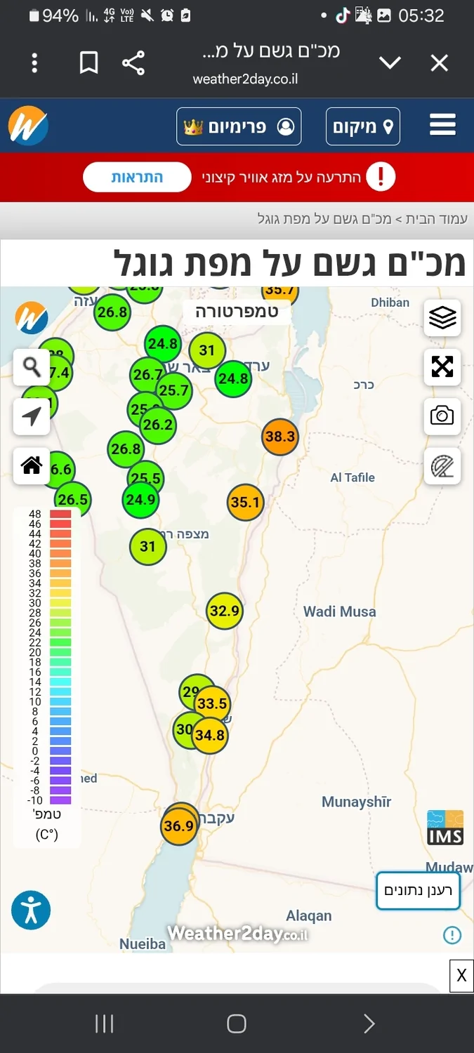 - דיווחי מזג אוויר - יום רביעי 13/08/2025 אלעד