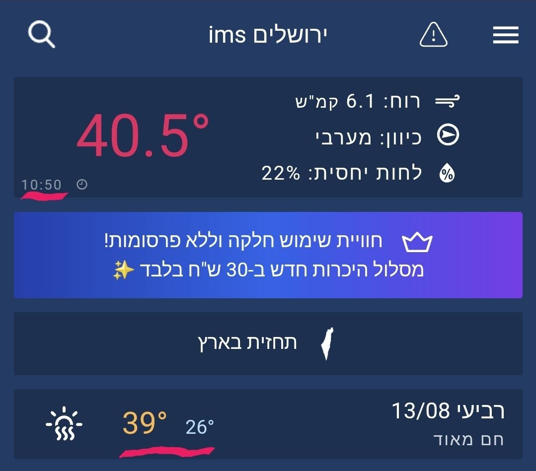 מי הוריד את התחזית ל39. בזמן שב11 בבוקר כבר 40.5..